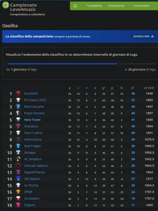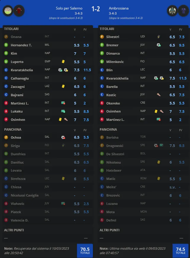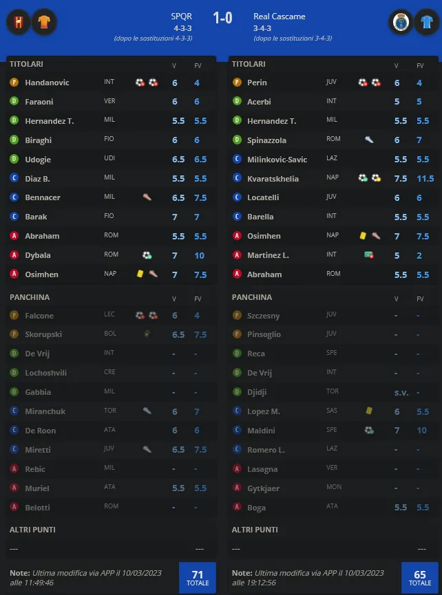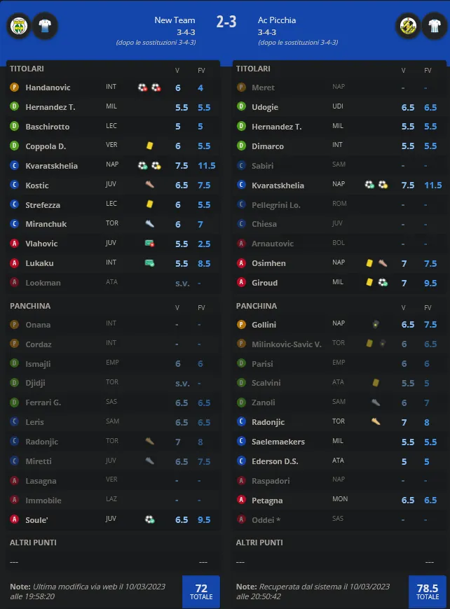 26° Giornata Fantacalcio L4M – Venerdì 10/03 ore 20.45 – lunedì 13/03 ore 20.45 Posted on 09/03/202330/03/2023 by dariotoby