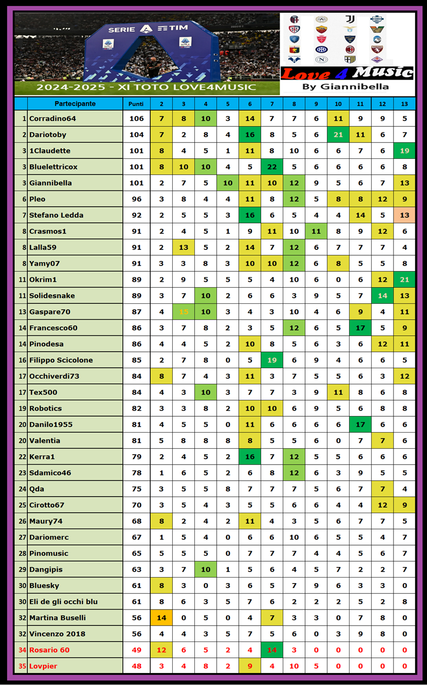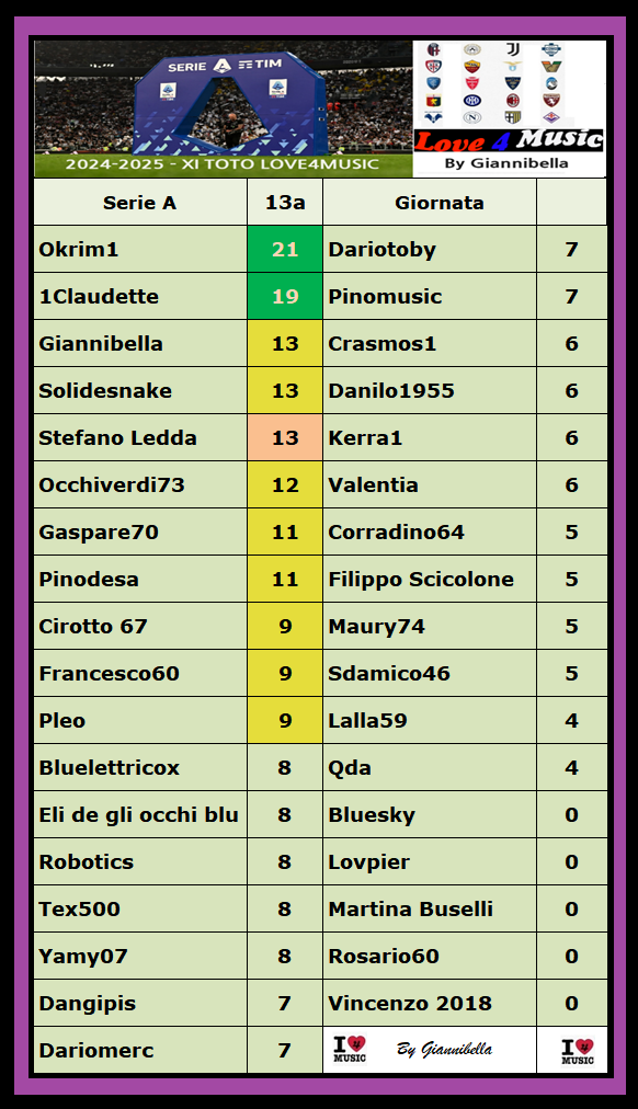 XI Toto Love4Music – 13a giornata